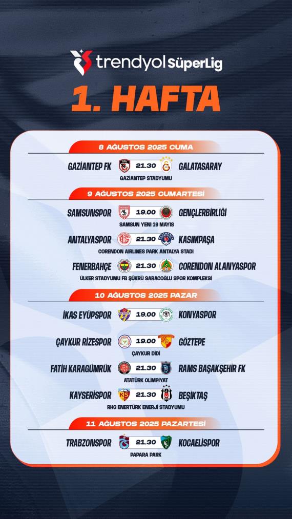 Trendyol Süper Lig’de 2025-2026 Sezonunun 1-2. Hafta Programları AçıklandıYeni Bir Gün